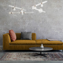 Light emits from Cipher Floor Lamp only from connection points, and the sources are ingeniously hidden to soften the overall effect. With components arranged in series and joined by polished champagne-gold finished connections, Cipher’s overall linear form creates a poetic visual rhythm. As a system, the Cipher collection is extremely flexible and customizable, with limitless possible configurations for private residences and bespoke installations.
