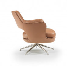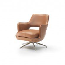 - Swivel base 4/5 spokes armchair/bergère with 360-degree swivel, in cast aluminum in these finishes: satin, chrome, burnished, black chrome, glossy anthracite color.