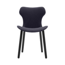 Papilio Shell comes with a padded polypropylene shell covered in fabric. The base comes with four wooden legs.
