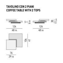 - Ash veneer, open-pore Moka lacquer finish, and drawer interior in the same finish. The 124×124 H30 cm coffee table always comes with both tops (upper and lower) in the same finish and color.